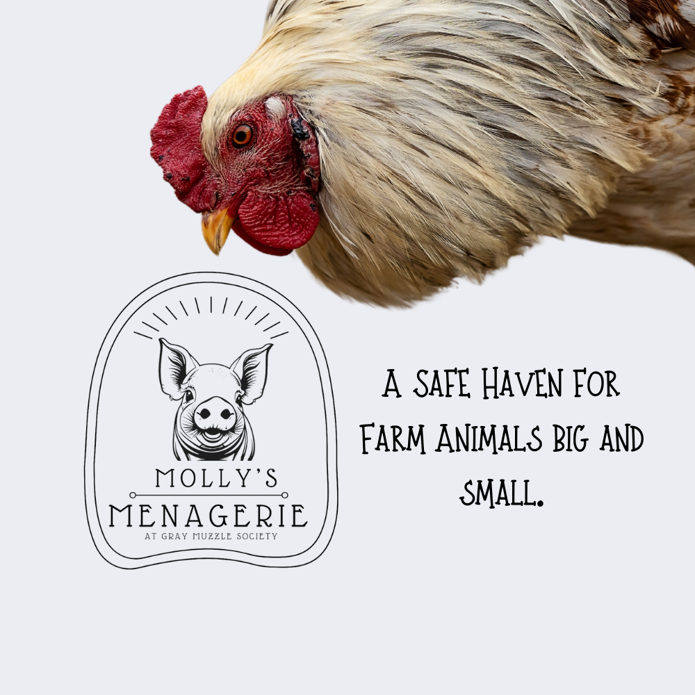 Unwanted pigs, roosters evicted from their flocks in the city, abandoned Easter ducklings, and orphaned bottle lambs have all worked their way into our home and our hearts. Find out more about each of the animals that have found sanctuary with us, schedule a time to visit, or bring the Menagerie to your next event.