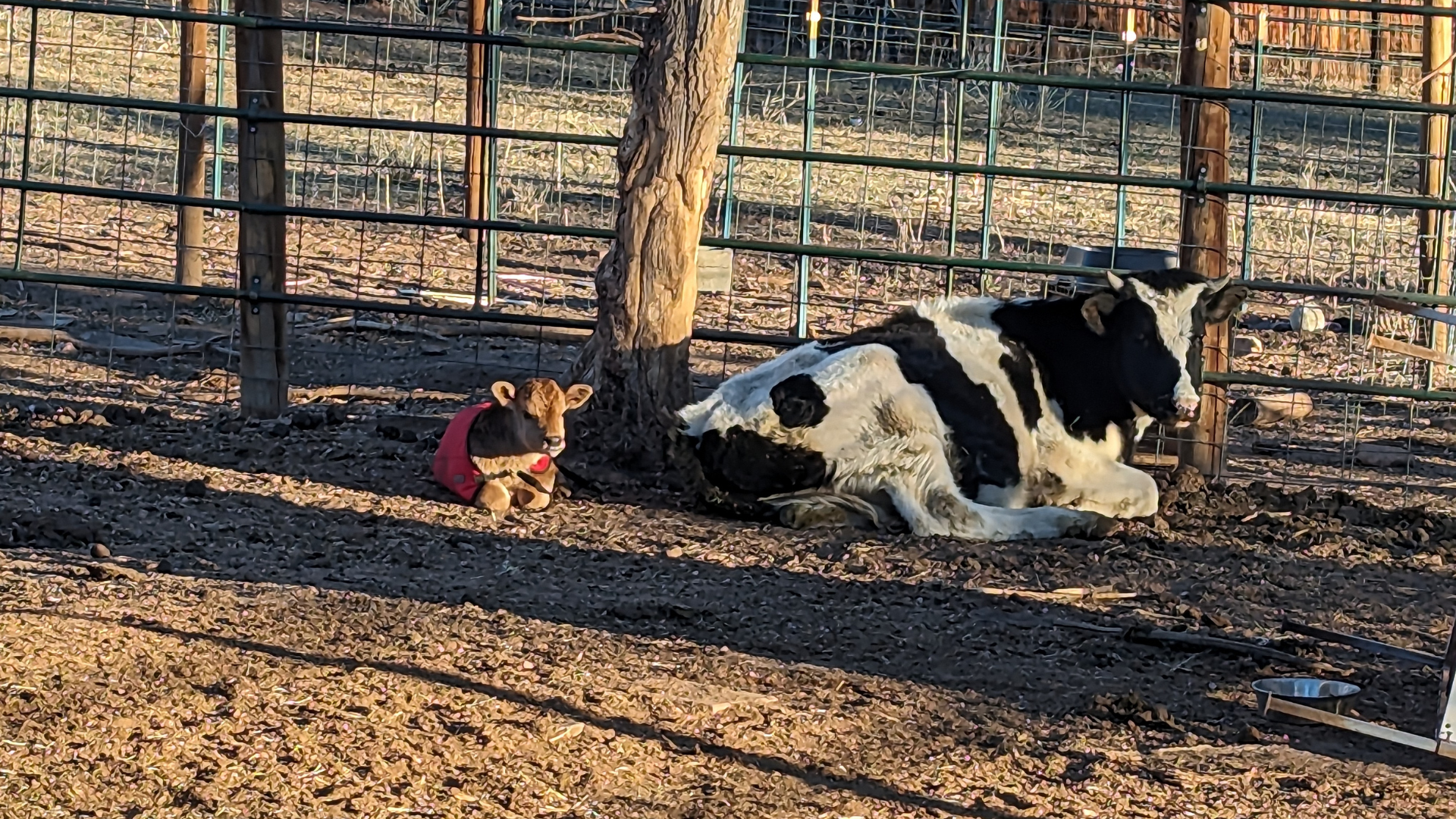 Doug joined us in December 2023 when it became clear that Jeff wanted a buddy of his own species. We were eager to help another displaced dairy steer and were happy to welcome Doug to the herd. You might notice that Doug has a wonky rib, the result of an old injury that was treated by a veterinarian but never healed quite right. Fortunately, it doesn't seem to cause him any harm, and Doug doesn't even notice. Doug is a sweet and sensitive little guy who gets along with everyone.Fun Fact: Douglas is a Jersey, the smallest breed of dairy cattle. Their milk is richer in fat and is most commonly used for making butter and ice cream.