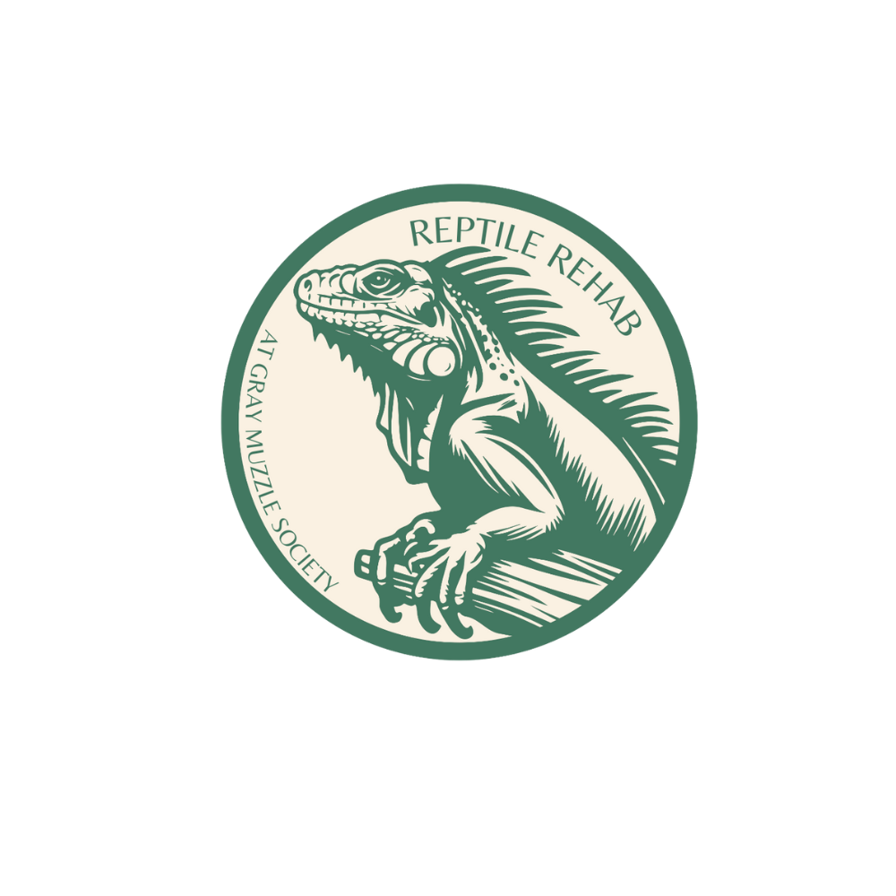 Reptiles had always been among the animals Molly and Kayson had championed while working at the shelter, with each of them taking home a few throughout the years. This inspired the inclusion of a lizard in our logo. We soon discovered the need was greater than we had expected, particularly for reptiles requiring specialized care due to illness or improper husbandry. Reptile Rehab at Gray Muzzle Society was born.